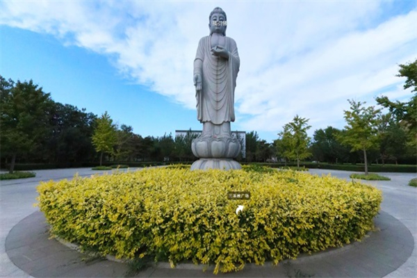 玉佛寺寝宫位于天津市西青区辛口镇,北面是当城村,南面是水高庄村,西面紧邻水高庄园及子牙河,与天津市古镇杨柳青比肩而邻。地处天津市西端,选址时采取多家大师意见,乾坤震巽,玉带环腰。
